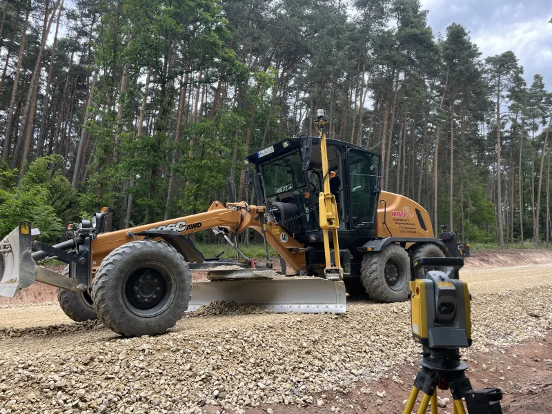 Im Mai 2025 führten wir den Wegebau in Seubersbach mit präziser Tachymetersteuerung durch – für exakte Höhen und saubere Übergänge.